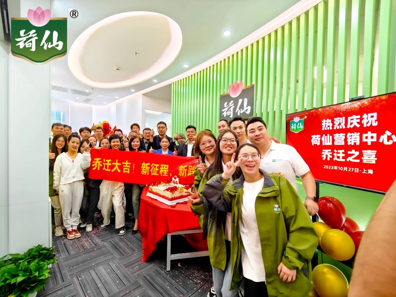新起點,新征程,2023年10月27日,荷仙集團營銷中心正式搬遷,入駐甲級寫字樓-虹橋萬創(chuàng)中心啦!荷仙全國各地的同事分別從寶應工廠、北京、廣州、杭州、成都、蘇州、合肥、無錫等地紛紛趕來上海,齊聚一堂,共同慶祝這一重要時刻!新辦公室整潔明亮,辦公區(qū)、研發(fā)室、會議室、直播室等分區(qū)一應俱全,為員工營造了寬敞舒適的辦